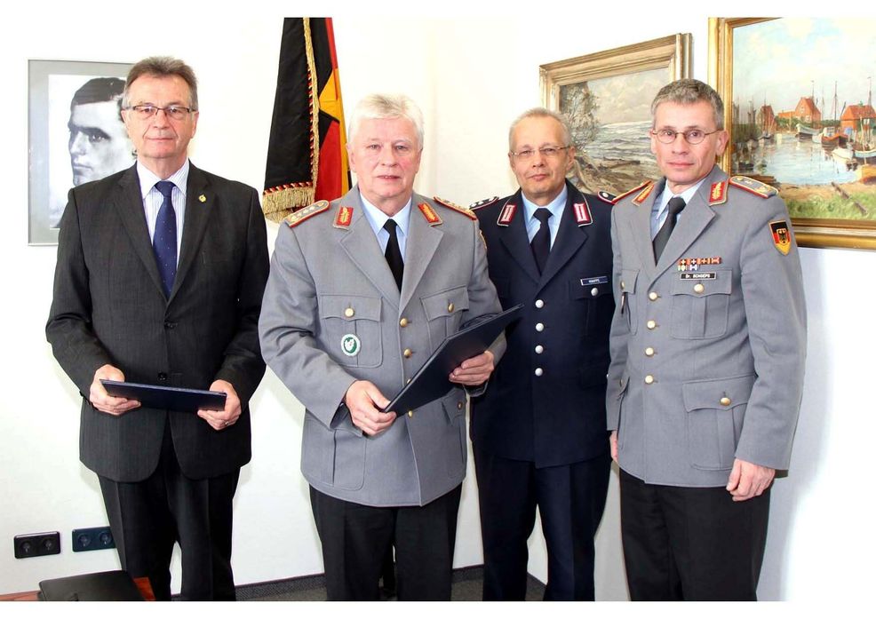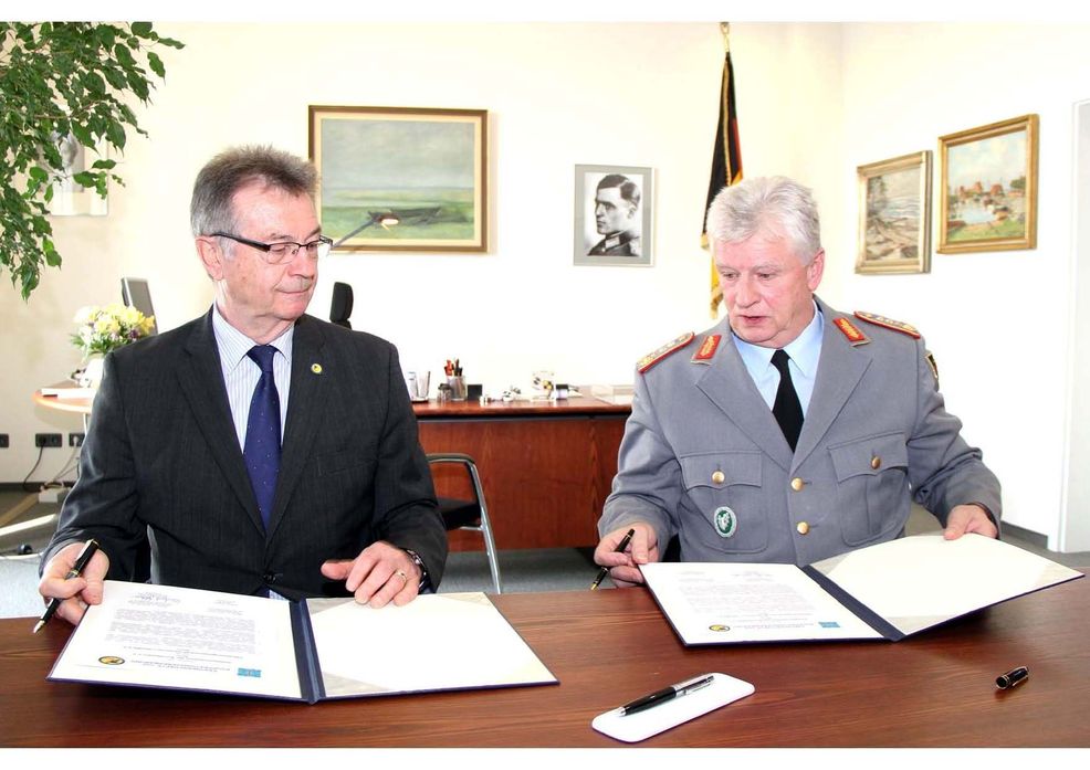Die Unterzeichnung wurde begleitet durch den Vorsitzenden des SHWBw, Herrn Generalsarzt Dr. Schoeps, und dem Geschäftsführer der IDLw, Herrn Oberst i.G. Knappe.