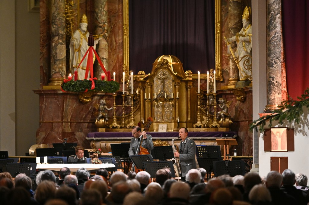 Die Ouvertüre aus der Oper „Hänsel und Gretel“ von Engelbert Humperdinck schließlich versetzte die Kirche in Schwingung – und das Publikum in Begeisterung. Das abschließende Lied „Es ist ein Ros entsprungen“ ließ vollends weihnachtliche Stimmung aufkommen. Den langanhaltenden Applaus hatte sich das Gebirgsmusikkorps redlich verdient. Für den Gastgeber, Herrn Brigadegeneral Rainer Simon, ein überzeugender Beleg, dass die Bundeswehr weit mehr kann „als nur in den Schlagzeilen zu stehen“.