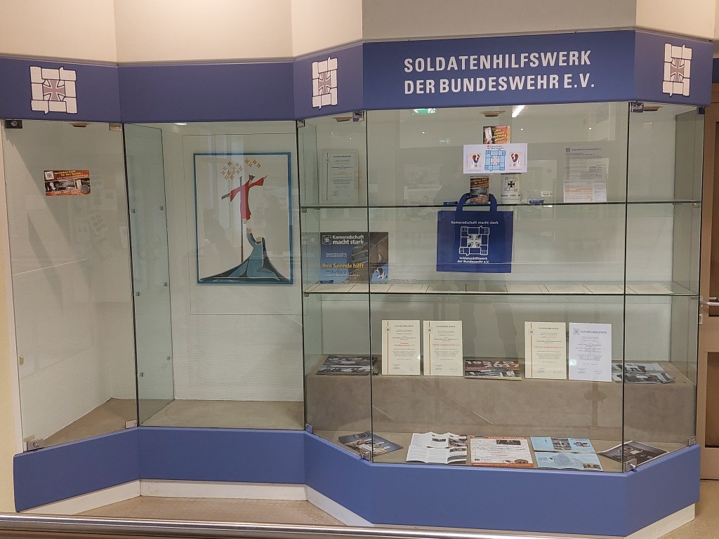 Nun ist es endgültig. Unser Mitglied, Oberstabsfeldwebel Olaf Täuber, verlässt nach vielen Jahren den Standort Kropp und wechselt an den Standort Husum. Allerdings, nicht ohne seinen Stempel in Kropp zu hinterlassen. So ist es seinem Engagement zu verdanken, dass in seinem alten Verband nunmehr ein Schaukasten eingerichtet wurde, der seinesgleichen sucht. Mit Unterstützung durch Oberstabsgefreiter Ewgenij Michaelis, der das Denkmal, welches an das Illerunglück erinnert, auf Leinwand malte, und des Bundeswehr-Dienstleistungszentrums Husum – ObjMgmt Kropp – wurde der Schaukasten „in Betrieb“ genommen. Er ist ein Hingucker, an dem kein Weg vorbeiführt. Vielleicht auch ein Ansporn für andere Standorte.