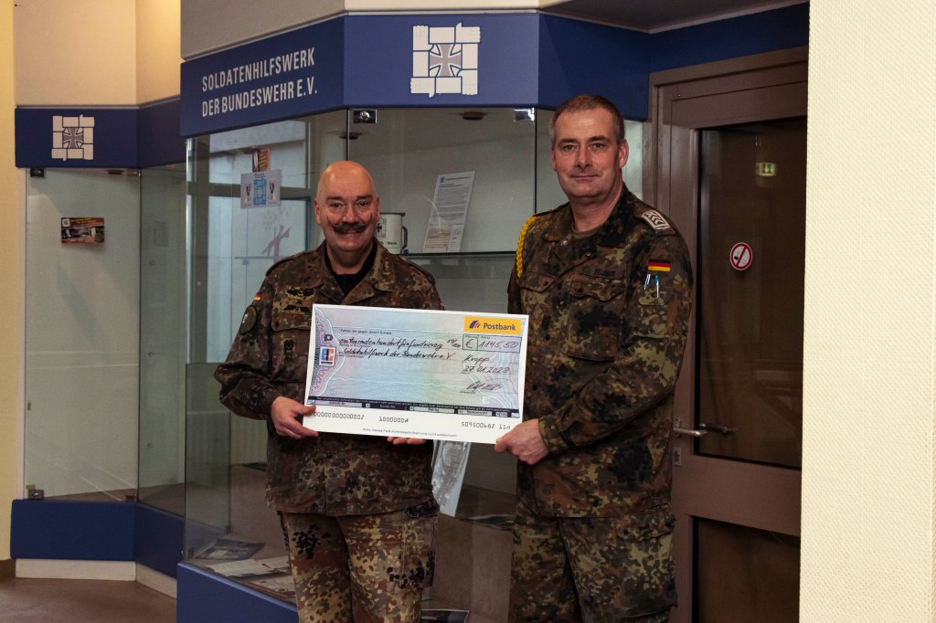 Aber das war noch nicht alles. So erhielten wir einen Spendenbetrag aus Kropp in Höhe von insgesamt 2.749,15 Euro, der sich aus verschiedenen Spendenaktionen zusammensetzt. Unser Ehrenmitglied, Herr Oberstleutnant d.R. Frank Dirksmeier, hat seinen Dudelsack wieder erklingen lassen und konnte so insgesamt 1.145,00 Euro einspielen. Ein tolles Ergebnis, welches besondere Anerkennung verdient. Für die Aktion Pfötchen – Kronkorken für Therapiehunde – konnten 651,00 Euro gesammelt werden. Aber auch die „Spieße“ des TaktLwG 51 „I“, die die Spendendose für uns in ihrer Runde kreisen ließen, steuerten 651,63 Euro bei. Und zu guterletzt verabschiedete sich unser „Spieß“ aus dem Kreise seiner Weggefährten in der UHG und auch hier kamen noch einmal 301,02 Euro zusammen.