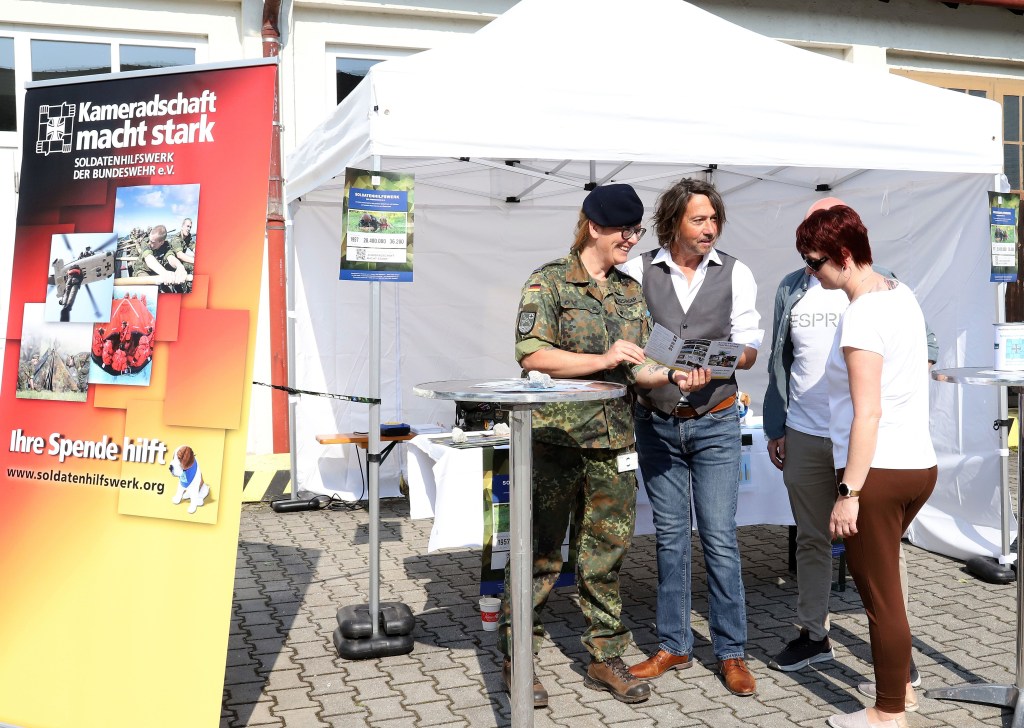 Unser Mitglied Oberstabsfeldwebel Alexander Mandl von der ITSBw in Pöcking und seine Kameradin, Hauptfeldwebel Melanie Freisinger, unterstützten am Tag der Bundeswehr die Kameraden in Murnau mit einem Info-Stand des SHWBw. Mit viel Engagement und guten Gesprächen sorgten sie dafür, dass sich fast 400,00 € zugunsten von unverschuldet in Not Geratenen in den Spendendosen ansammelten.
