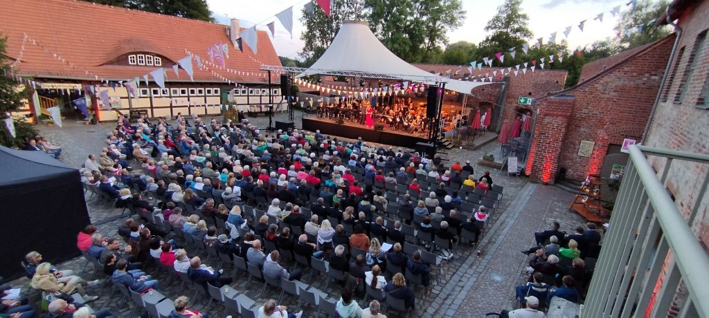 Die Burg Storkow erlebte am 30. August 2023 eine bezaubernde Nacht der Musik und des Gemeinschaftsgeistes, als das 19. Benefizkonzert der Stadt Storkow und des Informationstechnikbataillons 381 stattfand. Die Bürgermeisterin Cornelia Schulze-Ludwig und der Kommandeur Oberstleutnant Marc Tachlinski hatten zur traditionellen Benefizveranstaltung eingeladen. Über 300 Gäste versammelten sich zu einer „Helene Fischer and Friends – Partynacht!“ und wurden von einer mitreißenden Darbietung des Landespolizeiorchesters Brandenburg unter der Leitung von Christian Köhler begeistert. In Kombination mit den Sängern Simone Bernaldo und Michael Heller erfüllte sich die Bühne mit pulsierendem Leben und Energie.