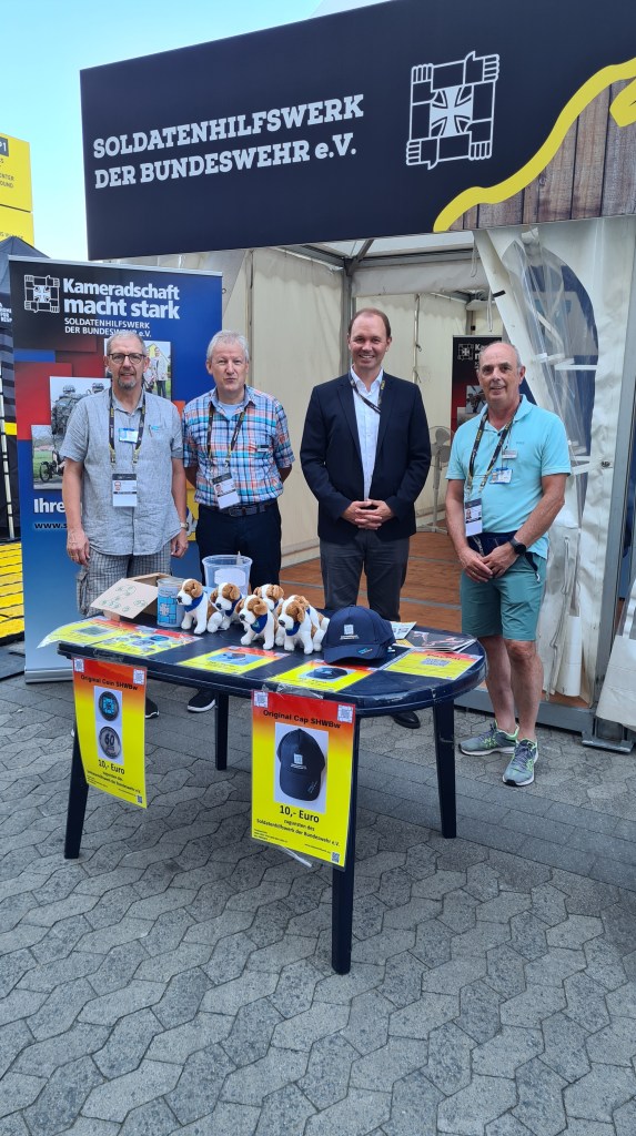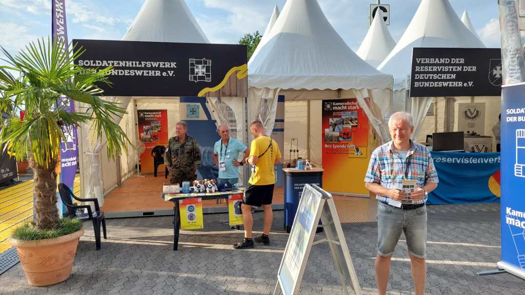 Seit Samstag, dem Eröffnungstag, sind wir mit einem Stand bei den Invictus Games dabei. Im sogenannten Invictus Village informieren wir, neben vielen anderen Organisationen, über unsere Arbeit und sammeln Spenden für unseren Verein. Unterstützt werden wir dabei von Mitgliedern aus der Region. Unser Stand trifft auf viel Interesse, insbesondere bei jüngeren Kameraden, aber auch bei den ausländischen Teilnehmern.