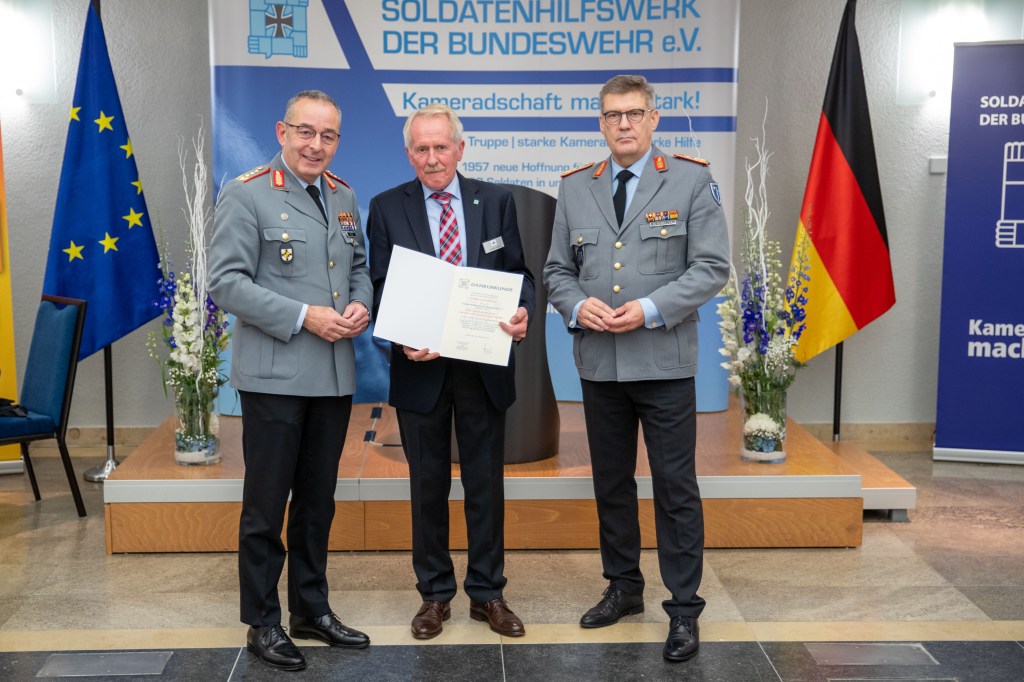 Einmal im Jahr kann sich das Soldatenhilfswerk der Bundeswehr e.V. mit einer besonderen Veranstaltung bei seinen Spendern bedanken. Die Spenderehrung des Vereins fand auch in diesem Jahr wieder im Gästecasino des BMVg im Bendlerblock in Berlin statt. In dieser besonderen Atmosphäre wurden insgesamt 37 Vertreter von Dienststellen, Einzelpersonen, Firmen und Netzwerkpartner für ihre Spendenaktionen geehrt. Die Ehrungen nahm unser Vorsitzender, General Breuer, gemeinsam mit unserem stellvertretenden Vorsitzenden, Generalstabsarzt Dr. Weller, vor.