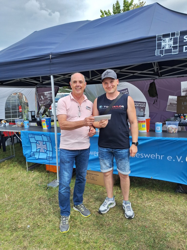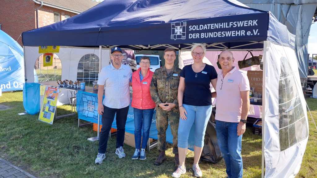 Dieses Jahr wurde der Stand von den Ehepaaren Trapp und Wulff betrieben. Am Samstag wurden die Vier tatkräftig von HptFw Zwick aus dem TaktLwG 73 „S“ unterstützt. Neben der Information über das Soldatenhilfswerk wurde, wie in den vergangenen Jahren auch, eine Tombola durchgeführt. Da der Freitag geprägt war von Wind und Regen, konnte nicht ganz an das Ergebnis des letzten Jahres angeknüpft werden. Immerhin konnten am Ende etwas über 5.000,- Euro zugunsten des Soldatenhilfswerk eingenommen werden.