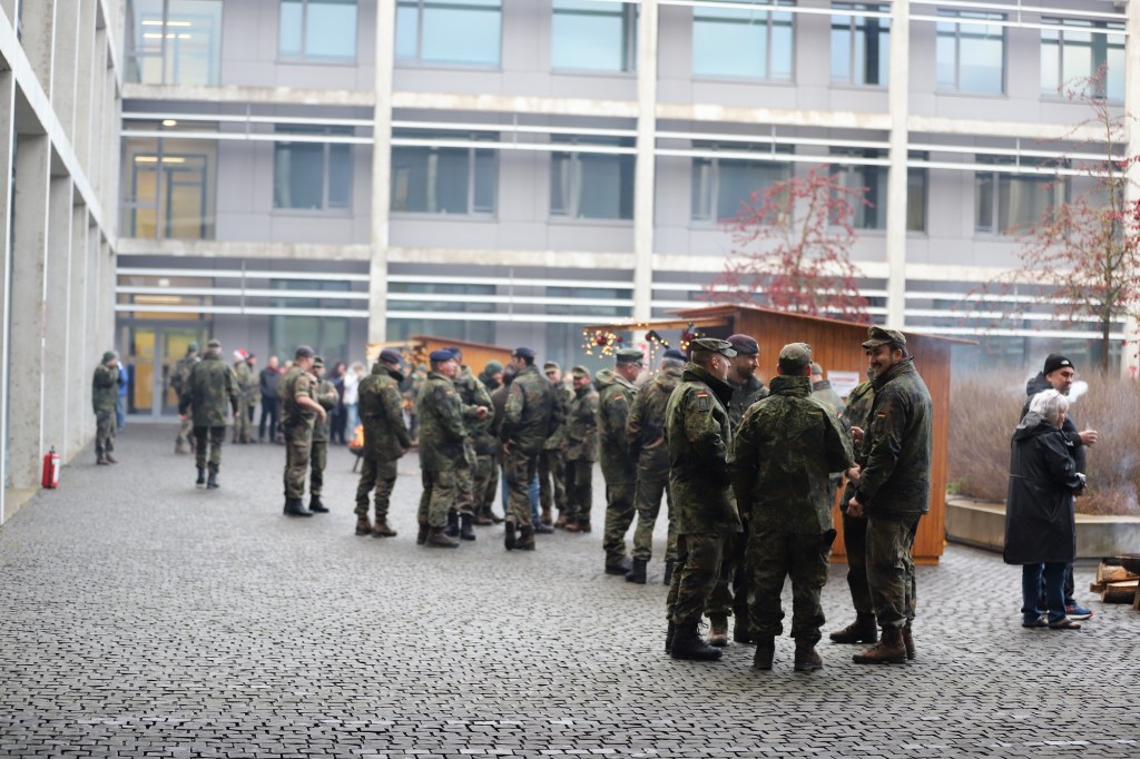 Pöcking – Das Jahr neigt sich dem Ende zu – und der Adventsmarkt steht auf dem Programm des Ausbildungszentrums Cyber- und Informationsraum (AusbZ CIR). Im Innenhof des Lehr- und Ausbildungsgebäudes versammelten sich wie schon im letzten Jahr einige hundert Ausbilder, Trainingsteilnehmende und Gäste, um bei einem heißen Getränk und vielen Leckereien in den Advent zu starten.