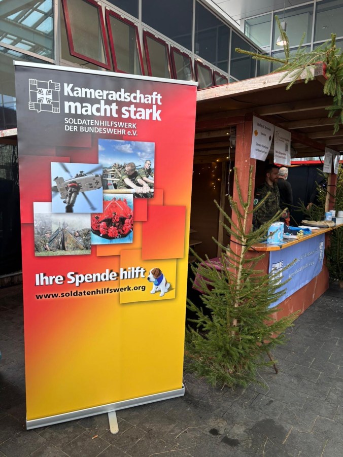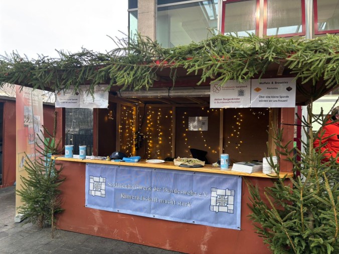 Stolze 1.170,- Euro wurden Ende Dezember durch den Bereich Truppenübungsplatzkommandantur Nord (BerTrÜbPlKdt Nord) an das Soldatenhilfswerk der Bundeswehr überwiesen. Die Spendengelder wurden durch verschiedene Aktionen der Dienststelle gesammelt. Höhepunkt war der Weihnachtsmarkt des Bundeswehrdienstleistungszentrum Bergen, wo das Soldatenhilfswerk mit einem Stand (siehe Fotos) vertreten war. Hier wurden (gern gegen Spenden) kostenlose Waffeln an die Besucherinnen und Besucher des Weihnachtsmarktes verteilt.