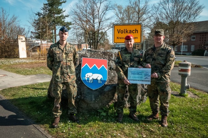 Die gesammelten Spenden kommen dem Soldatenhilfswerk der Bundeswehr e.V. zugute. Am 23. März fand die offizielle Spendenübergabe durch Spieß und Kompanieführer der 5./ LogBtl 467 statt. Hierzu reiste auch der zuständige Vertreter des Soldatenhilfswerkes für die Standorte Hardheim, Walldürn, Niederstetten und Volkach (rechts im Bild zu sehen) an. In einem würdigen Rahmen wurde der Spendenscheck übergeben und das Engagement der beteiligten Soldatinnen und Soldaten gewürdigt.
